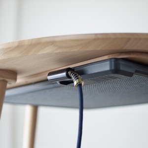 こちらの作品は、オーク材のラウンドダイニング( ※4本脚 )の姉妹品です。違いはフラットヒーターが付属している点です。