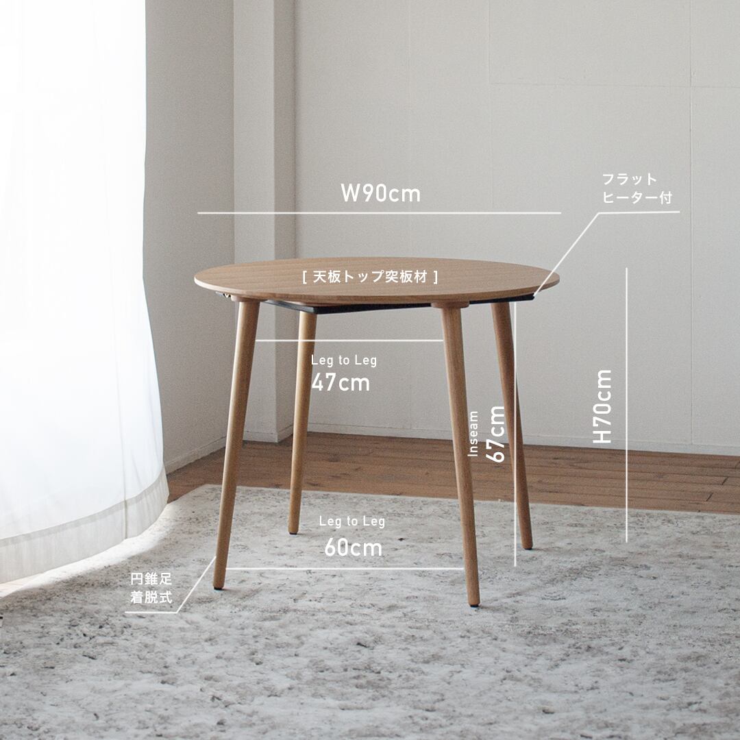 オーク材のこたつダイニング[フラットヒーター付] かけ布団のいらないダイニングテーブルタイプのこたつ