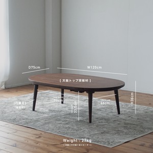 ウォルナット材のオーバルこたつ・こたつ単体[120cm] 素材選択 フラットヒーター 節電 日本製