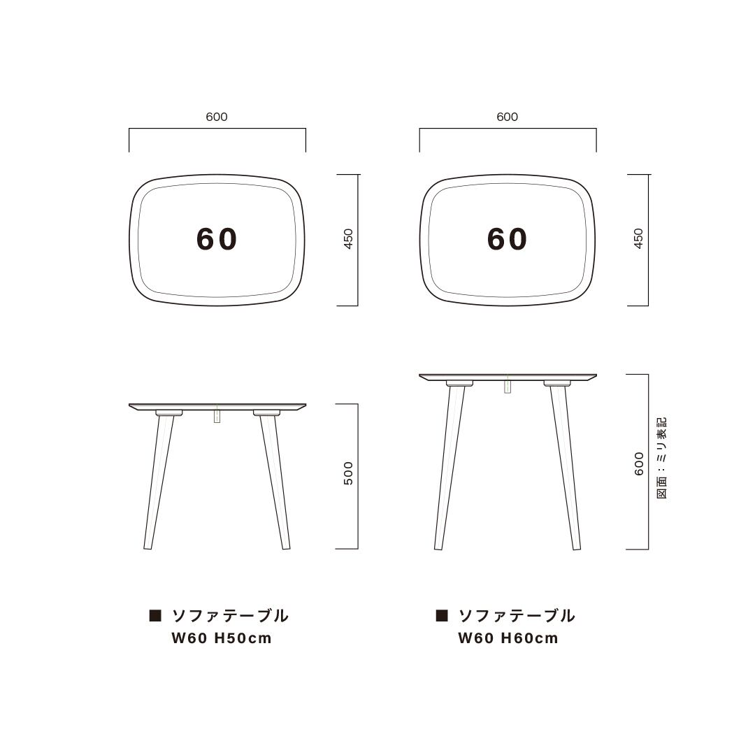 オーク材のソファテーブル [60cm] 高さを選べます。セミオーダー 日本製