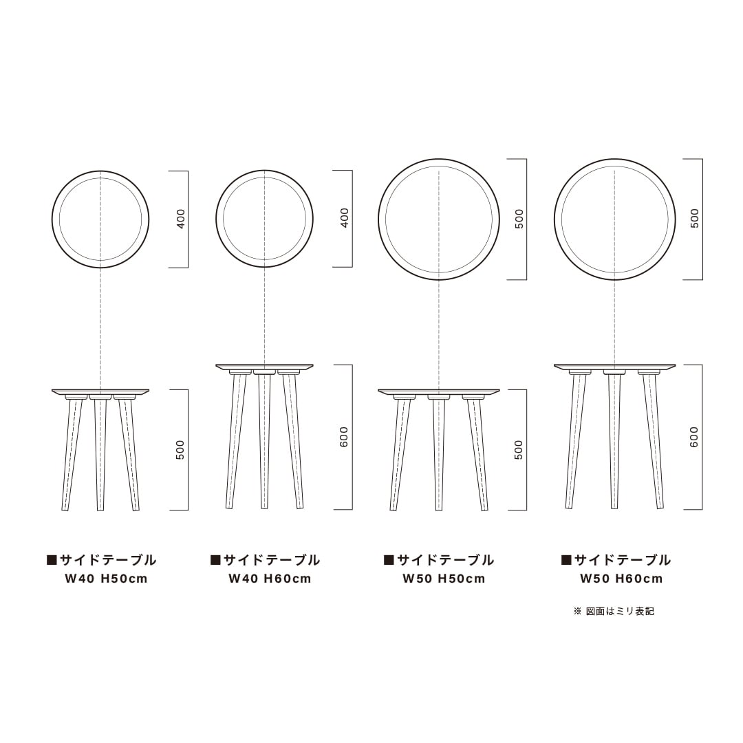 オーク材のサイドテーブル[2サイズ 40cm・50cm] 高さ選択可 セミオーダー 日本製 天然突板